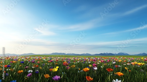 Wildflower meadow, untouched beauty and vibrant hues, 3D illustration