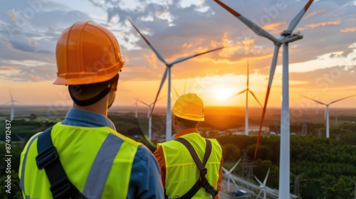 Wind turbine maintenance crew, ensuring the efficiency of renewable energy sources