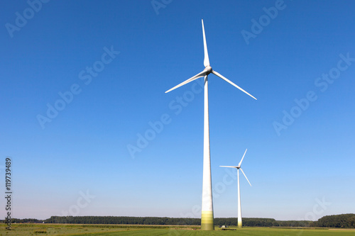 Wind turbine spinning with in a green countryside environment