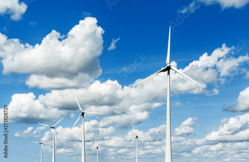 Wind turbines field for electric power generation. Green energy generate from wind