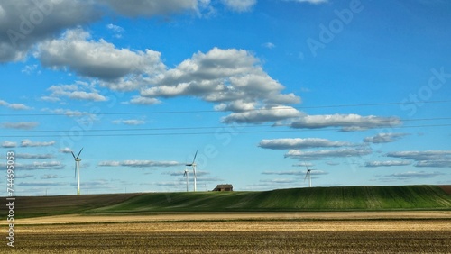 wind, sky, field, energy, power, electricity, nature, landscape, green, turbine, grass, cloud, blue, farm, windmill, cloud, meadow, rural, summer, generator, road, environment, electric, alternative, countryside