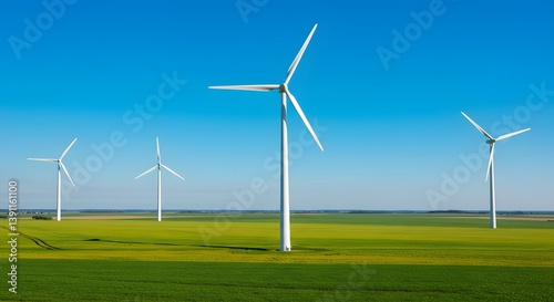 Wind Turbines on Green Field under Blue Sky Renewable Energy