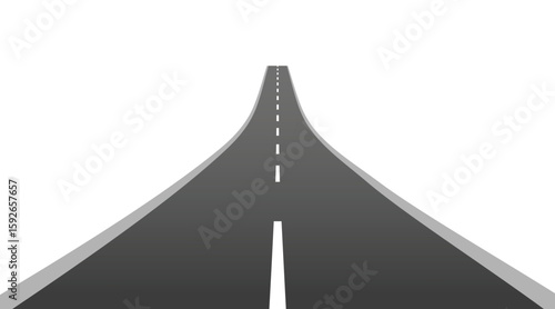 Winding road isolated on white background. Disappearing into the distance. The two-lane road with lane markings. Conceptual image. 3d rendering