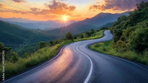 winding road, mountain, sunset, scenic, landscape, nature, greenery, travel, adventure, tranquil, serene, beautiful, sky, cloud, sunlight, horizon, journey, drive, highway, forest, foliage, path, picturesque, countryside, panorama, vacation, escape, exploration, get-away, breathtaking, idylli, winding, natural beauty, asphalt, curve, dusk, scenery, summer, road trip, destination, solitude, peaceful, remote, non-urban, rural