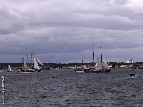 Windjammer Ausfahrt zur Kieler Woche. Viele Segelboote auf der Förde