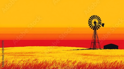 Windmill Silhouette in a Golden Wheat Field at Sunset