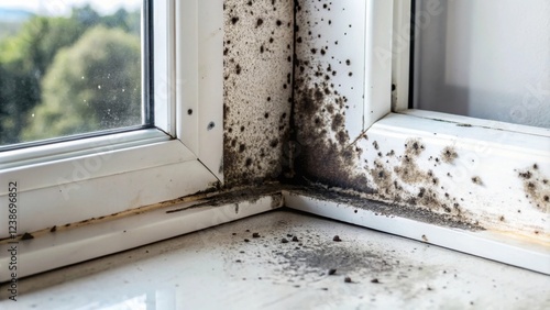 molded, mildew, fungal, window, frame, sill, damage, repair, cleaning, dampness, moisture, condensation, spore, infestation, building, interior, structure