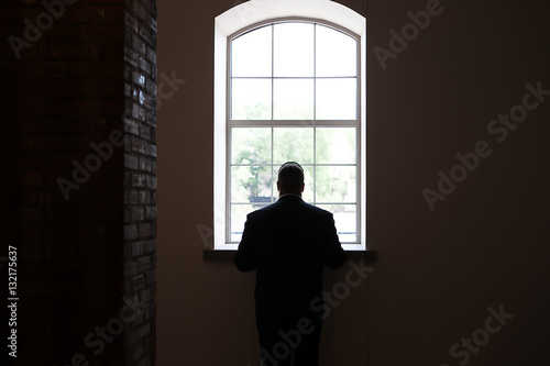 background, black, business, caucasian, dress, face, looking, man, man, people, person, professional, silhouette, view, white, window, young