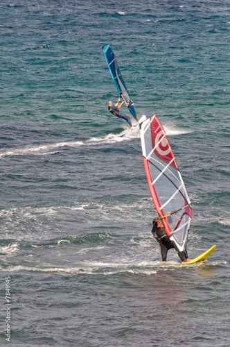 Windsurfers sufing on the sea of beach Pozo Izquierdo. Gran Cana