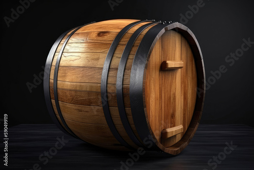 Wine, beer barrel. Old wooden barrel. Generative AI