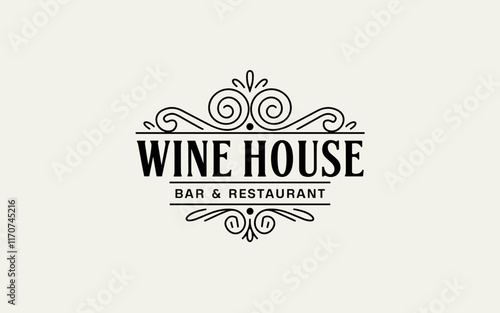 Wine House Bar and Restaurant Ornate Vintage Logo