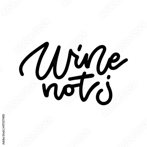 Wine not phrase - linear black vector illustration. Modern line calligraphy. Lettering quote Isolated on white background.