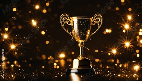 Winner trophy against a backdrop of sparks and a radiant background, symbolizing victory and achievement