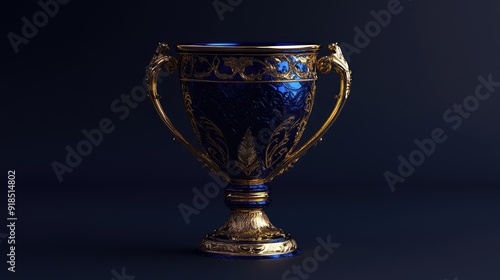 Winner trophy, blue gold champion trophy. Ai generation