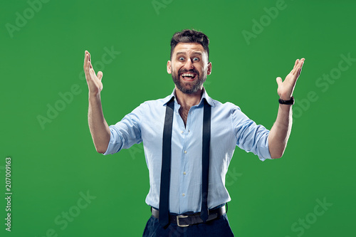Winning success man happy ecstatic celebrating being a winner. Dynamic energetic image of male model