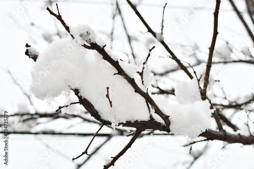 Winter branch covered with snow