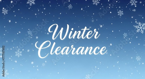 Winter Clearance Sale Banner with White Script Text and Falling Snowflakes on Blue Gradient