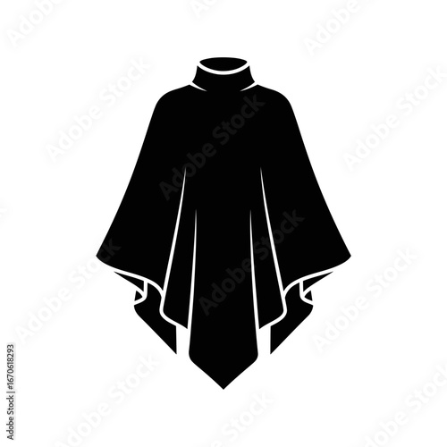 Winter female clothing icons vector art of elegant black poncho, a stylish and versatile outerwear vector