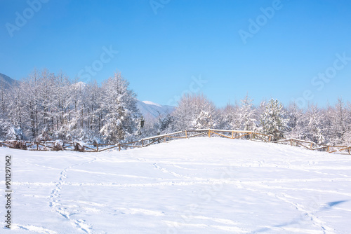 christmas, new year, season, ski resort, winter, snowy, snow, nature, landscape, mountain, tree, wood, pine, background, panorama, travel, white, peak, blue, scenic, vacation, bulgaria, wonderland, spruce, fir, resort, tree, pine, forest, copy space, sunny, sky, horizontal