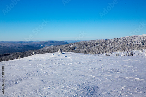 Winter landscape with snow and blue sky in Trysil mountain Norway