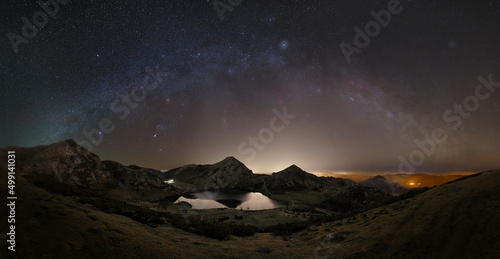 lake, asturias, spain, nightscape, night photography, night, starry sky, milky way, winter, orion, organic, vacation, mountain, green, countryside, hike, grass, view, panorama, rind, pasture, outlook, park, national park, nature, mount, meadow, europa, landscape, walking, sky, reflections, natural, scenery, beautiful, mirror, trail, beauty, lagoon, tour tourism, water, peaceful, peak, travel
