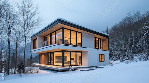 modern, house, winter, snow, architecture, home, building, design, contemporary, exterior, facades, snowy, tree, forest, landscape, nature, residential, style, elegant, luxurious, minimalist, scenic, light, evening, cosy, refuge, architectural, haven, comfort, view, serene, white, black, glasses, window, illuminated, stillness, cold, mountain, secluded, quiet, retreat, residence, pristine