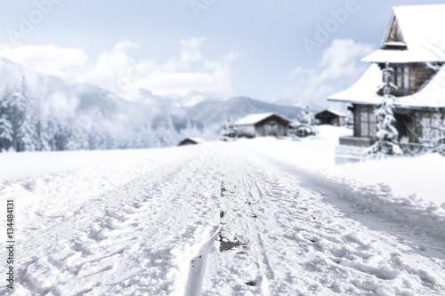 winter road and snow with frost