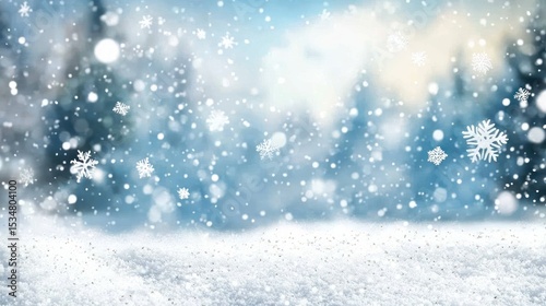 Winter scene with falling snowflakes.