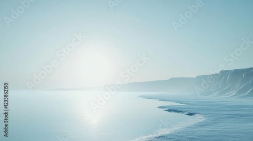 Winter Serenity Over the Dead Sea with Tranquil Waters and Expansive Copy Space for Text