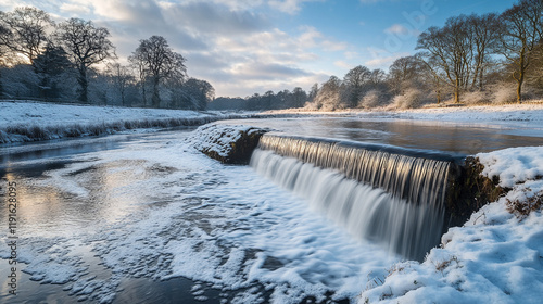 waterfall, snow, winter, tree, nature, landscape, river, frosty, blue skies, sunlight, rock, cascade, scenery, outdoors, calmness, cold, scenic, peaceful, flowing water, cloud, beauty, wildlife, season, fresh, natural, environment, morning, serene, glacé, ice, tranquil, clear, daylight, park, wet, cold weather, timberland, ecosystem, harmony, winter landscape