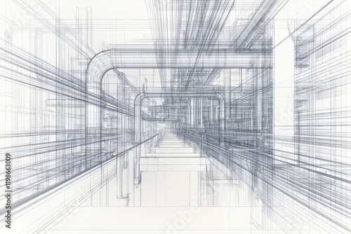 wireframe computer cad design of pipelines for modern industrial, Generative AI