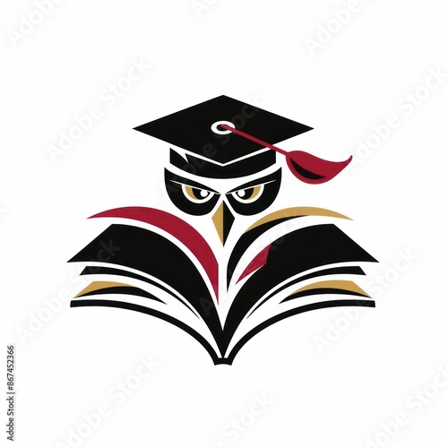 owl, graduation, cap, book, education, wisdom, cognition, learning, student, school, college, university, library, literature, reading, study, scholar, intelligent, smart, bird, black, red, yellow, white, icon, symbol, logotype, graphic, design, vector, illustration, flat, minimal, abstract, simple, concept, creative, modern, style