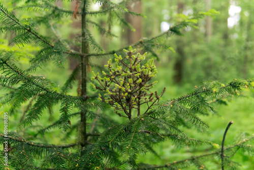 sorcerer, broom, formation, branch, tree, closeup, fir, spruce, woody, plant, conifer, coniferous, nature, natural, disease, pathology, mutation, forest, needle