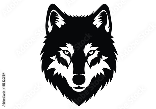 Wolf face silhouette. Fierce lupine emblem showcasing bold features, detailed fur, and piercing eyes, symbolizing wilderness and strength. Vector clipart black illustration design.
