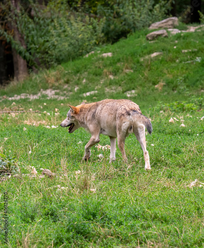 wolf, wolf, canino, animal, wild animal, summer, nature, grey, standing, single, creature, full-length, canis, untamed, mammal, fur, europa, carnivore, natural, 1, grey, wildlife, fauna, wild, predator, outside, endangered, grass