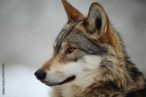 Wolf profile in the winter snow