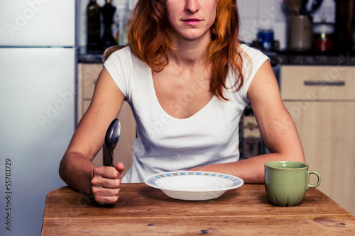 meal, breakfast, domestic, home, kitchen, woman, beautiful, bowl, hot drink, cup, drink, eating, female, food, food and drink, hot drink, mug, selective focus, table, woman, young adult, caucasian, ginger, mealtime, one person, people, red hair, redhead, sitting, spoon, tea, time, unusual, waiting