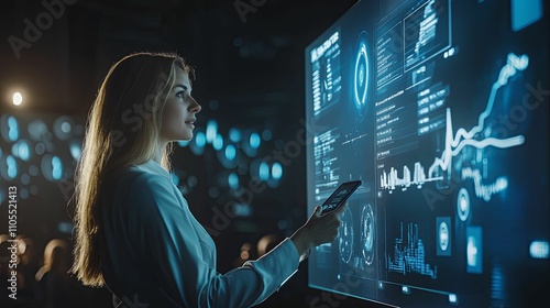 woman, female, datum, analysis, screen, interactive, display, technology, digital, information, graph, chart, business, professional, businesswoman, futuristic, modern, interface, visualisation, computing, network, system, monitoring, control, management, strategy, planning, decision, making, innovation, progress, growth, trend, future, potential, success, development, research