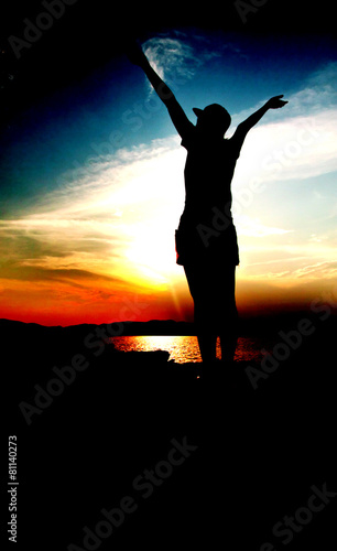 beach, coastline, cruise, dusk, enjoyment, holiday, laziness, loneliness, night, outline, overcast, relaxation, resting, sea, silhouette, sky, sun, sunset, sleepy, tourist resort, twilight, vacation, water's edge, woman, idled, twiddle, waterside