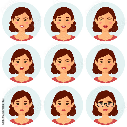 Woman avatars facial expressions