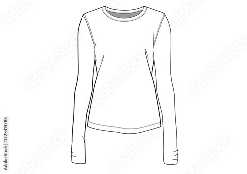 Woman Basic Jersey Long Sleeve Crew Collar Body Fashion Sketch Template Front & Back Technical Draw Fashion Illustration