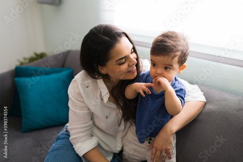 30s, adult, baby, beautiful, boy, brunette, caucasian, children, couch, cute, family, female, happy, holding, home, indoor, infant, lifestyle, living room, love, mother, mother, eltern, people, portrait, pretty, single, sitting, smile, sofa, son, toddler, together, 2, woman, young