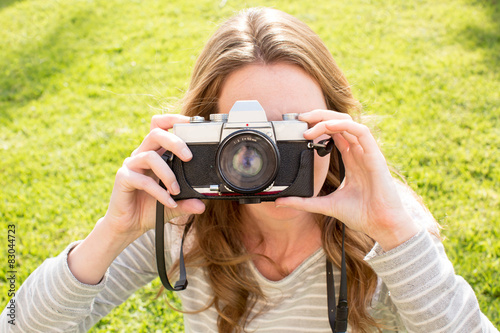 photographer, camera, photo, summer, girl, amateur, photo camera, antique, green, happy, portrait, youth, attractive, lense, outside, hold, young, film, woman, professional, outdoors, picture, hobby, old, beautiful, blond, nature, image, artist