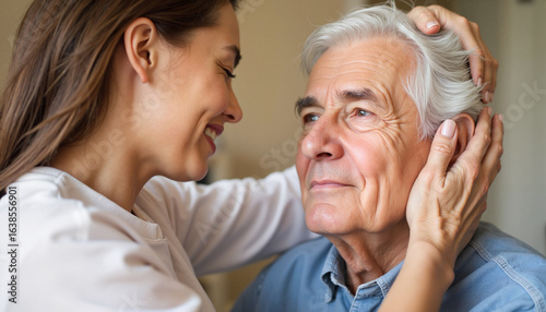 woman, man, elderly, caring, touch, smile, home, indoor, love, family, affection, support, conversation, interaction, happiness, adult, senior, health, human relationships, connection, help, comfort, kindness, compassion, bonding, day, modern, mature, facial expression, warmth, lifestyle, emotional, joyful, domestic, portrait, indoor, respect, companionship, trust, missy, health care