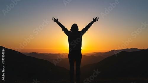 serenity, hope, raised, victory, motivation, peace, exploration, goal, inspiration, achievement, joy, sunrise, horizon, silhouette, success, arm, freedom, dusk, happiness, person, summit, scenic, peak, dawn, female, light, woman, sun, orange, sunset, outdoors, sky, celebration, yellow, nature, adventure