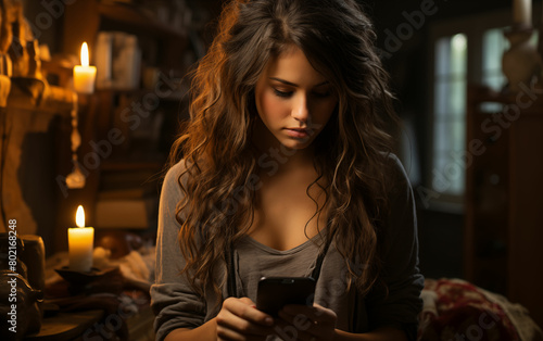 woman, mobile phone, phone, dark, room, screen, scrolling, technology, smartphone, young, girl, indoor, illuminated, browsing, checking, messaging, communication, digital, device, using, staying, connected, late, night, social, media, cyberspace, addiction, obsession, dependency, online, chat, texting, absorbed, distracted, information, age, modern, lifestyle, connectivity, virtual, earth, mesmerizing, hand-held, isolation, solitary, generative, ai