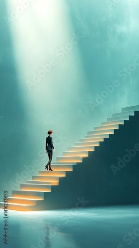 woman, stair, light, step, ascent, journey, progress, hope, determination, modern, design, architecture, abstract, silhouette, path, vision, challenge, fashion, elegance, interior, minimalism, perspective, inspiration, achievement, movement, stylish, illumination, space, motivation, future, success, dream, climb, background, shadow, atmospheric, concept, empowerment, technology, calmness, beauty, lifestyle, standing, solitude, exploration, feeling