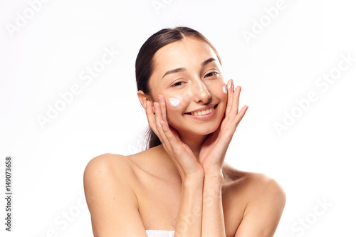 ethnicity, skin, human, closeup, woman, person, beauty, product, adult, 1, face, moisturiser, treatment, caucasian, looking, applying, smiling, woman, head, only, care, shoulder, brown, people, body, young, beautiful, complexion, positive, isolated, year, emotion, hair, make-up, camera, female, white, portrait, at, female, confidence, suntan, mask, background, health, cheek, attractive, hand, fashion, eye