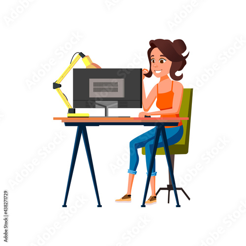 woman creator digital image processing on computer cartoon vector. woman creator digital image processing on computer character. isolated flat cartoon illustration