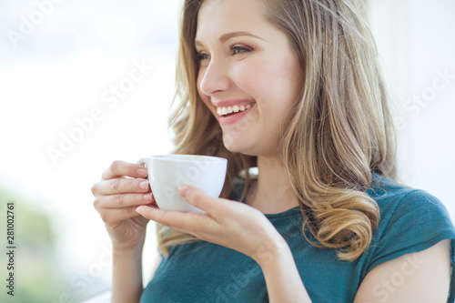 woman, hot drink, cup, drink, tea, young, drinking, beautiful, happy, portrait, beauty, smiling, mug, beverage, smile, person, white, hot, lifestyle, home, holding, people, morning, casual attire, breakfast, cafes, pretty, girl, mature, cafeteria, relax, sun, table, break, light